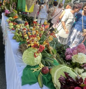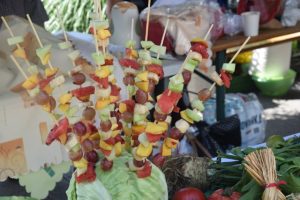 Z naszego ROD-u wyłoniono w drodze konkursu dwa równorzędne I miejsca w konkursie „Najpiękniejsza działka w Ogrodzie” , które były nagrodzone również przez Zarząd Okręgowy najwyższymi notami i nagrodami. Na naszym stole oprócz plonów przygotowaliśmy poczęstunek dla zarządu, gości oraz działkowców odwiedzających nasze stanowisko. Częstowaliśmy pysznym kruszonem z działkowym rabarbarem, marchewkowym bigosem oraz bardzo efektownie wyglądającymi i smacznymi szaszłykami owocowymi.